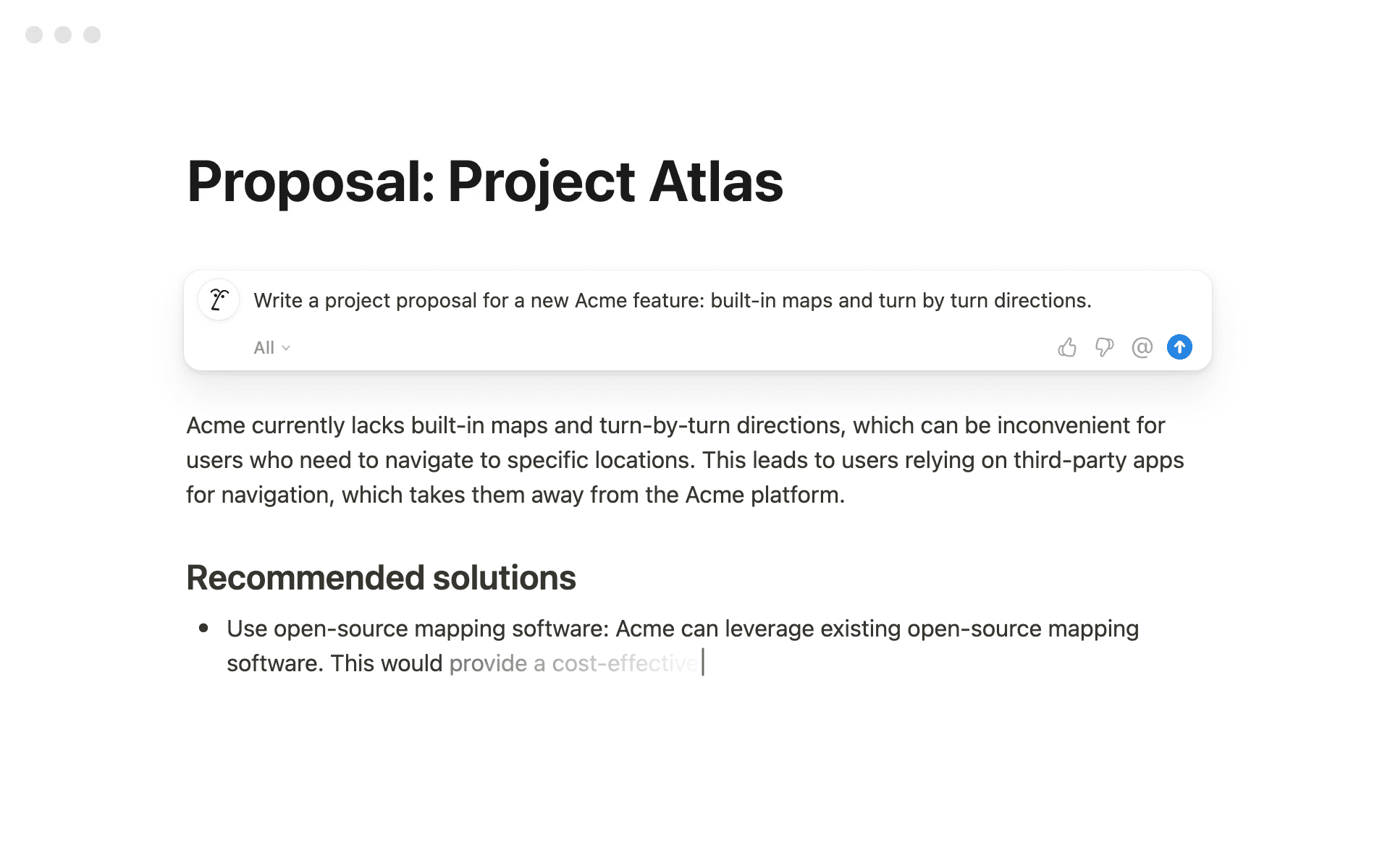 Access the limitless power of AI, right inside Notion. Work faster. Write better. Think bigger.